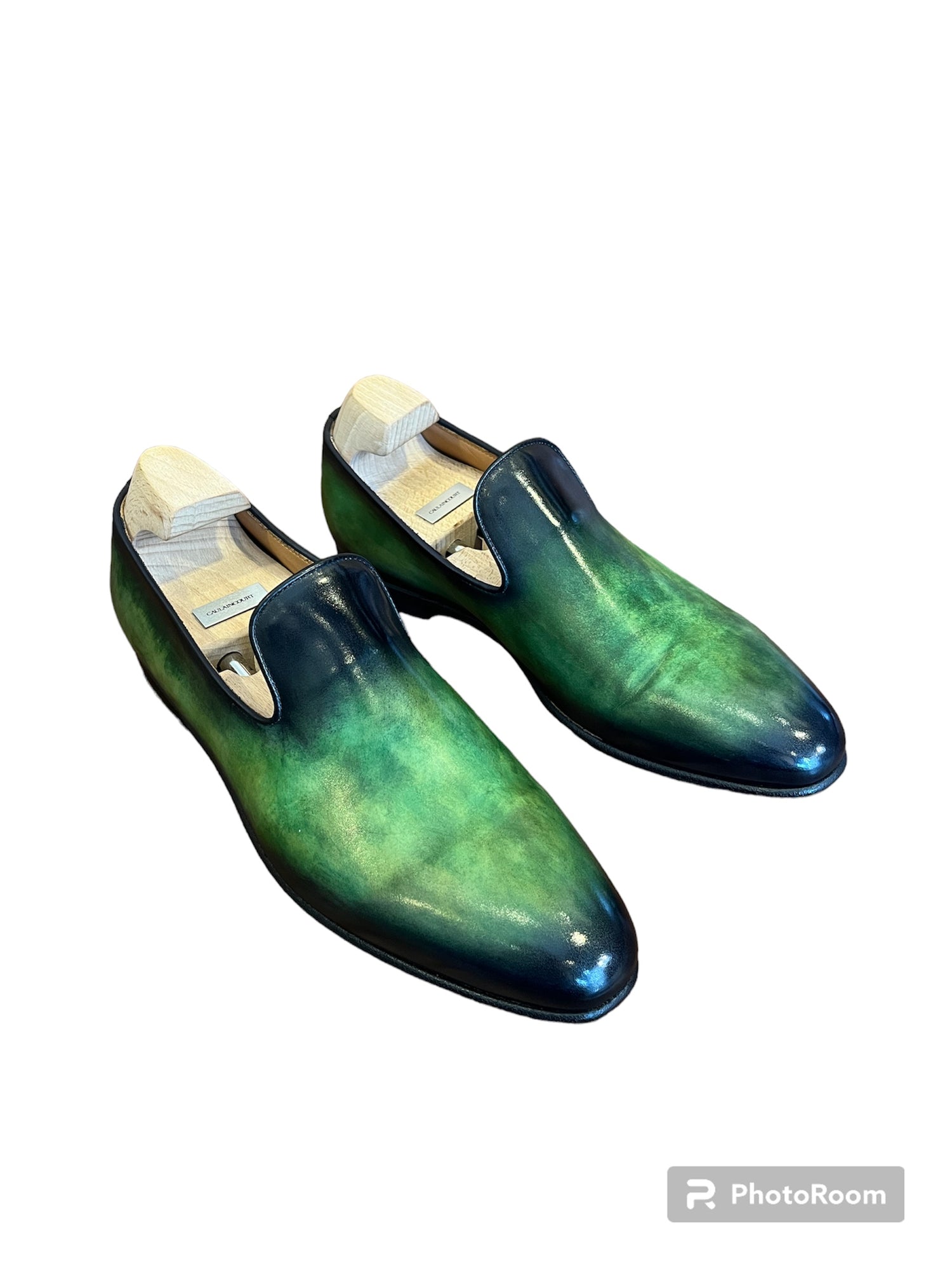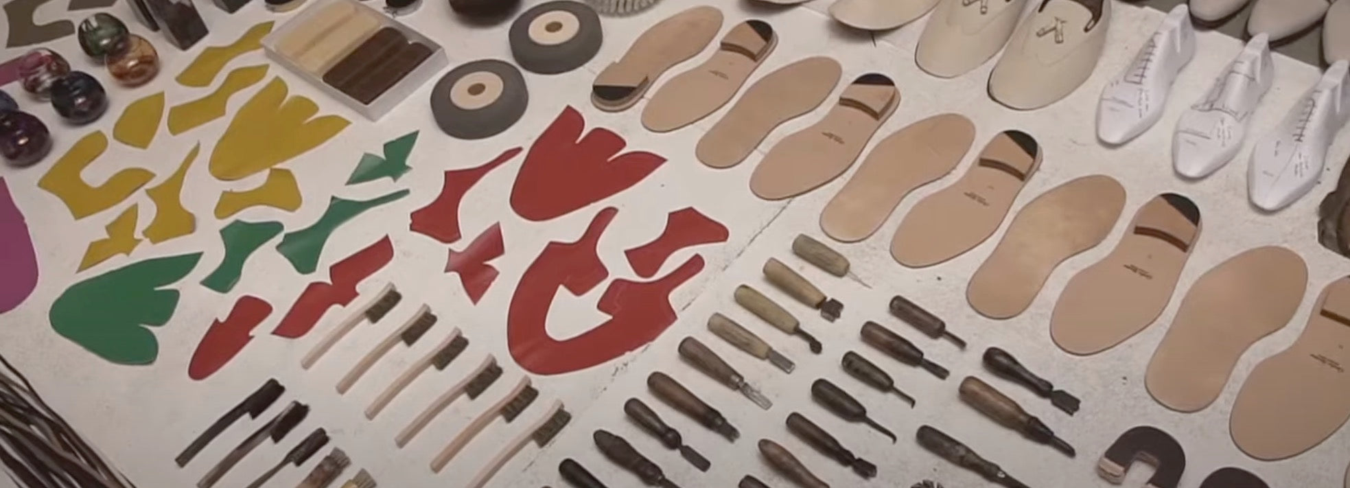 Dès la réception de vos chaussures, encore vierge de toute teinture, Pierre Monserant entame la phase de personnalisation. Ce passionné de patine et expert du cuir pioche dans sa palette de teintures Avel®, des formules pour patine made in France, en Charente, et de cirages, crèmes et pâtes à cirer Saphir®. Place à la patine ! Muni de pinceaux plus ou moins fins aux poils plus ou moins souples, Pierre Monserant entame la phase finale de la création de souliers. Grâce à son expertise du cuir, il colore le soulier avec une teinte de base avant de réaliser le dessin à la patine selon le résultat souhaité.