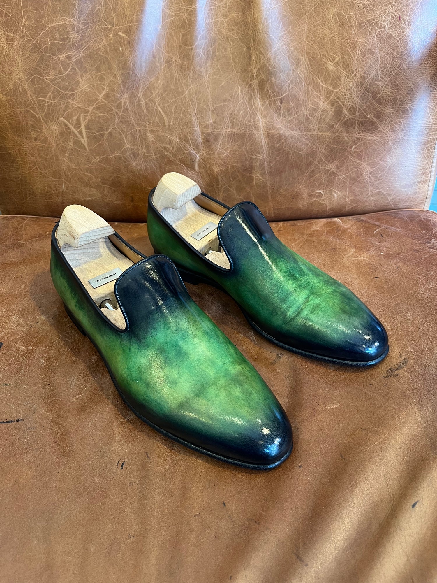 “Je collabore avec des chausseurs comme Carlos Santos, qui me propose des modèles sur lesquels on travaille la patine comme sur une page blanche.” Pierre Monserant, la patine dans la peau