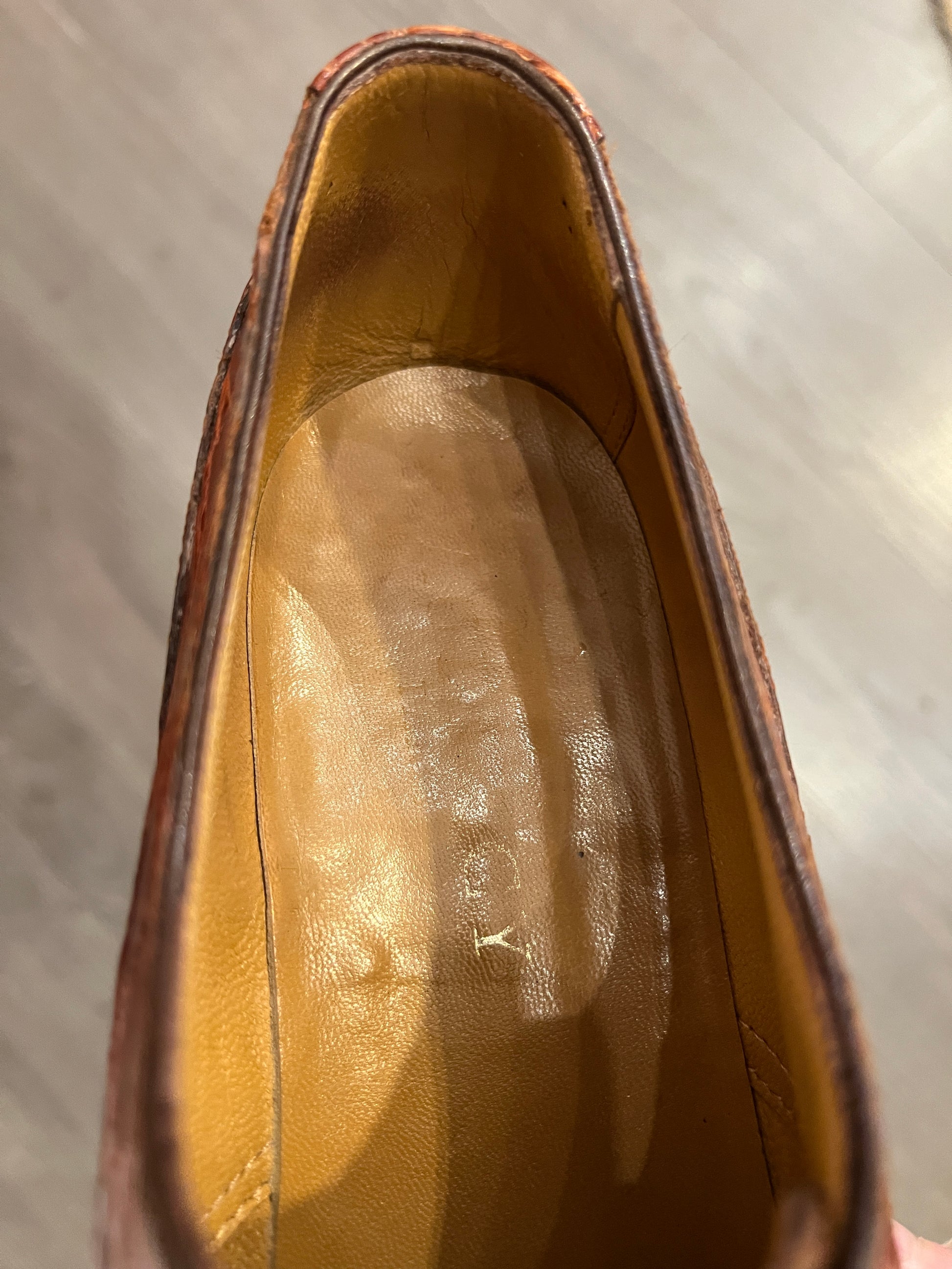 - Conseils d'entretien - Cirez vos souliers avec du cirage adapté tous les 6 à 7 ports. N'oubliez pas de glisser des embauchoirs dans vos souliers quand vous ne les portez pas.