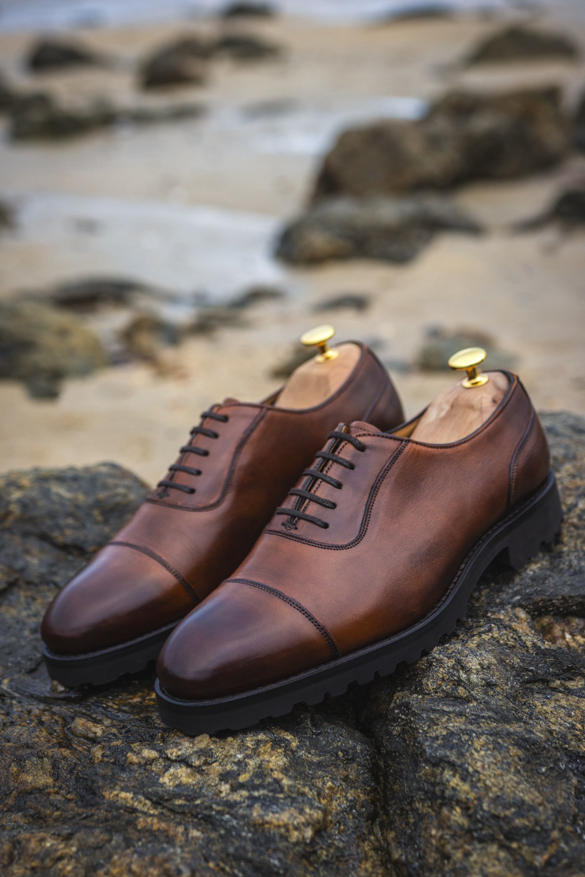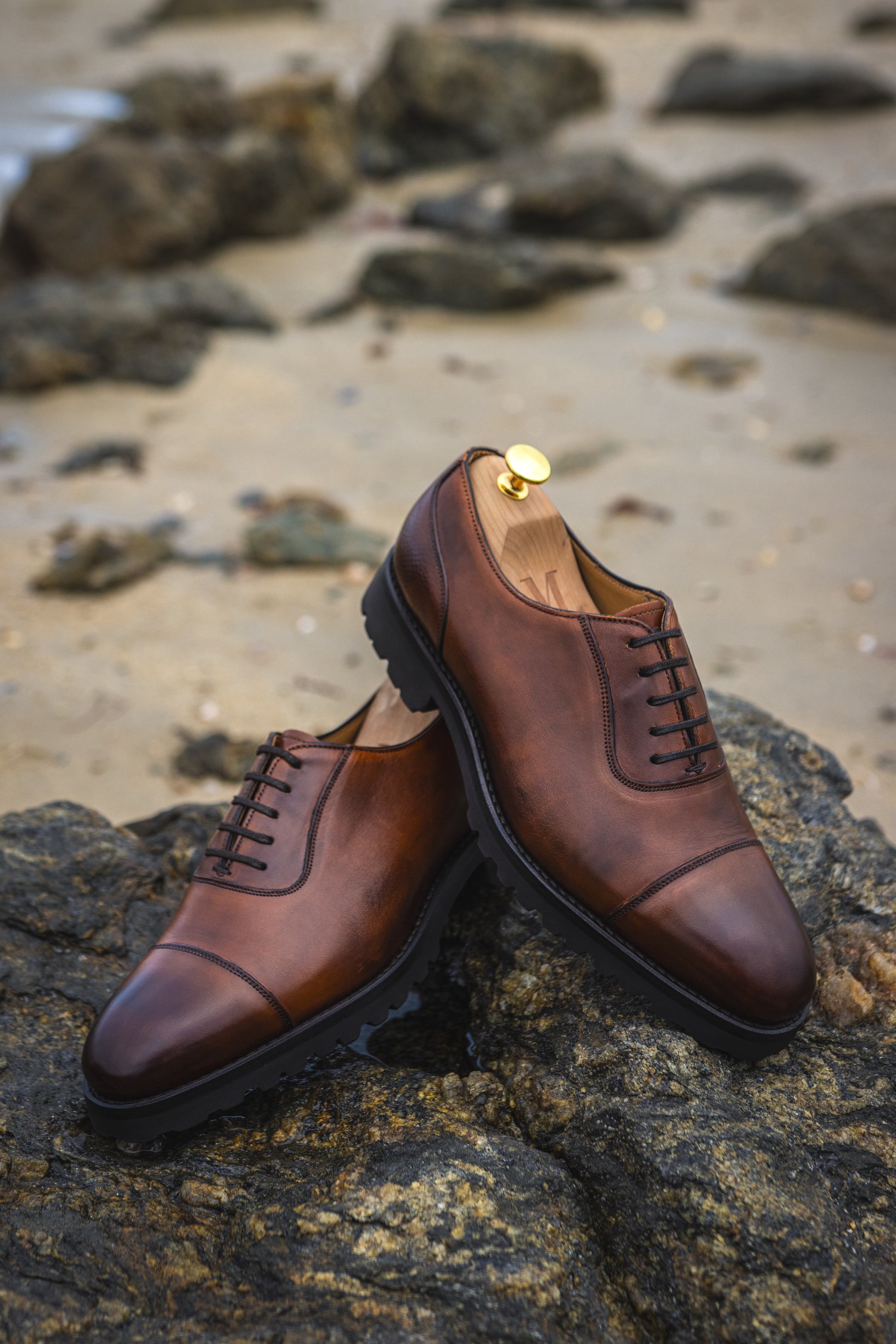 Fabriqué en cuir huilé patiné à la main, il se distingue par ses nuances cognac uniques et son style à la fois sobre et affirmé. La semelle Vibram extra-light assure un confort immédiat dès les premiers pas tout en garantissant une adhérence optimale et une grande résistance.