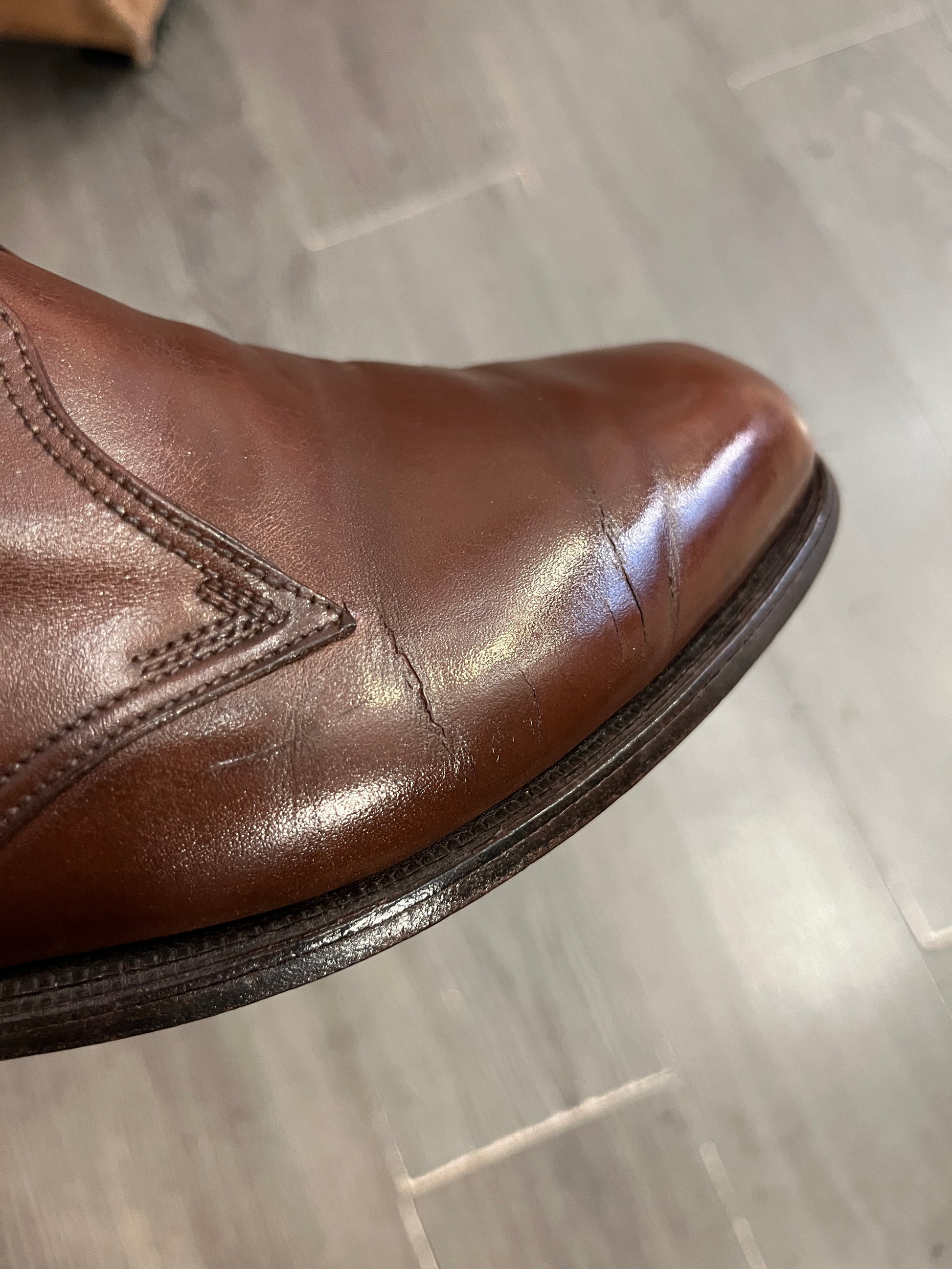 - Conseils d'entretien - Cirez vos souliers avec du cirage adapté tous les 6 à 7 ports. N'oubliez pas de glisser des embauchoirs dans vos souliers quand vous ne les portez pas.